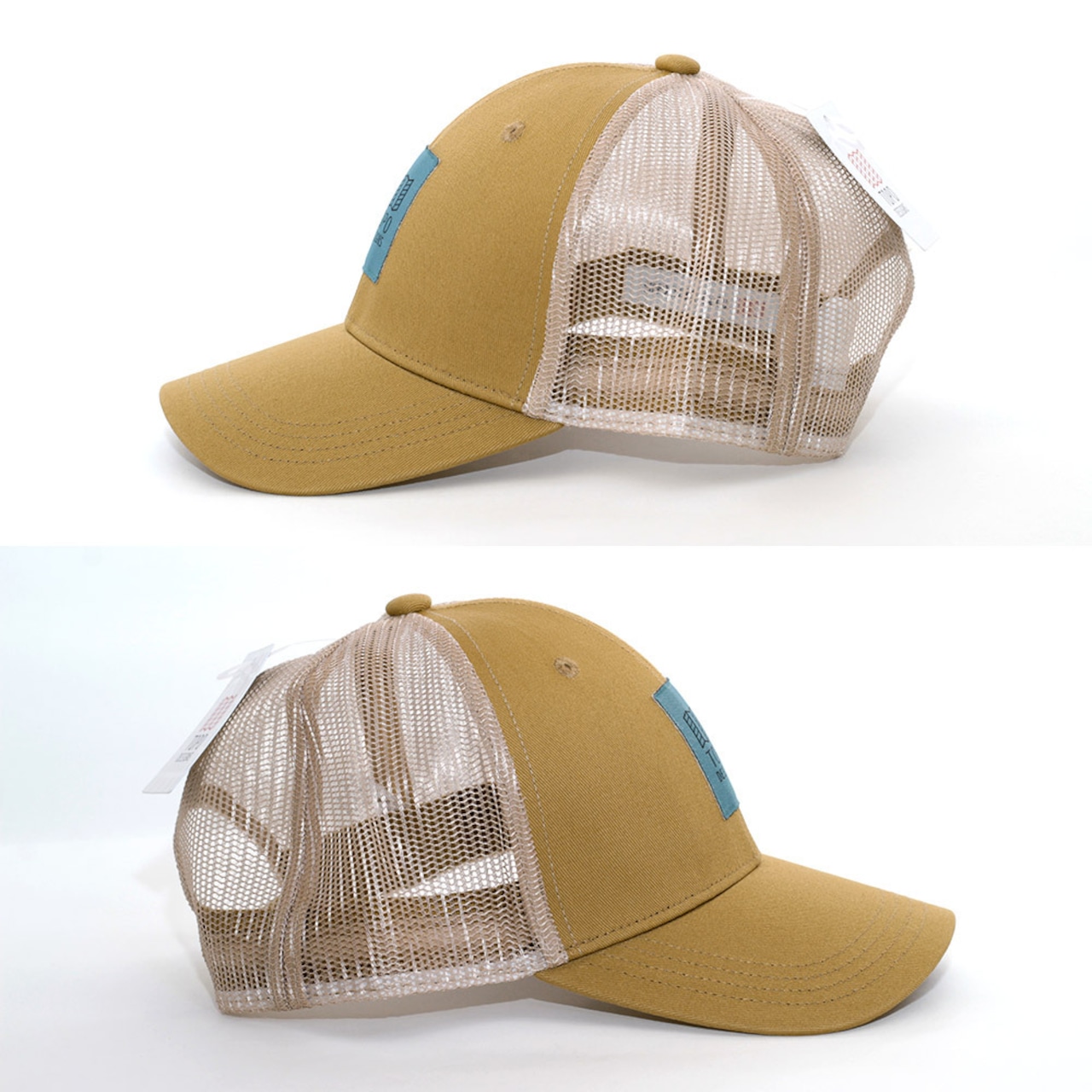 ブランドロゴのアップリケがフロントにデザインされたメッシュキャップです。