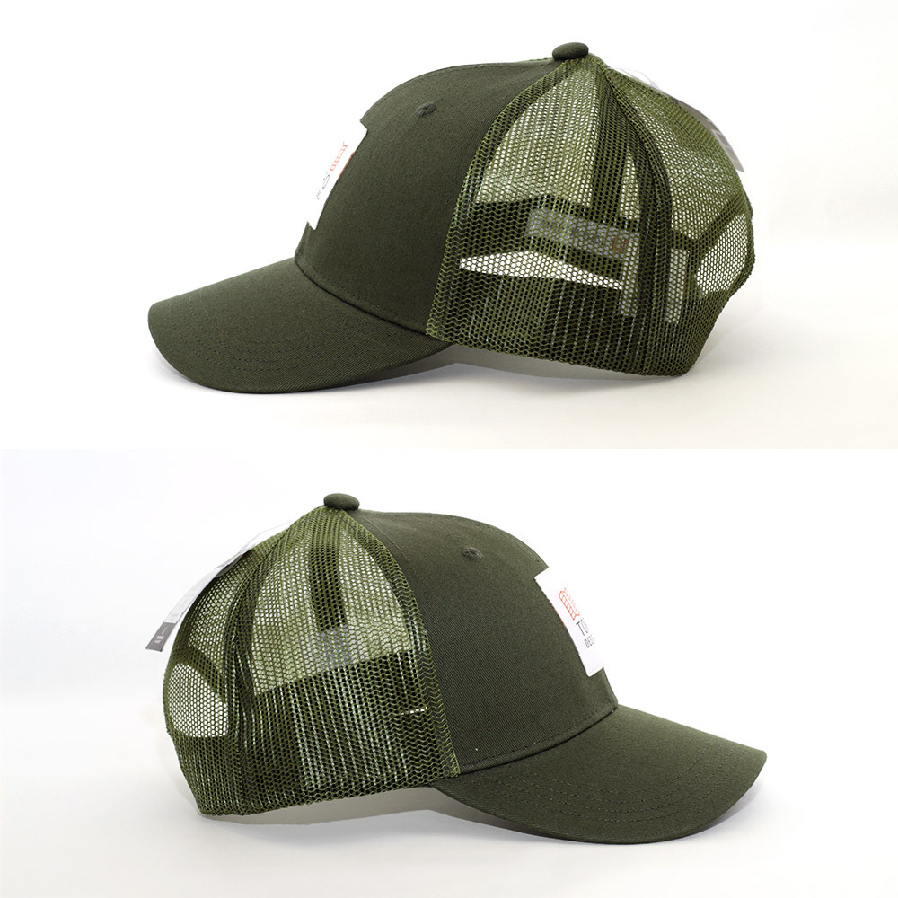ブランドロゴのアップリケがフロントにデザインされたメッシュキャップです。