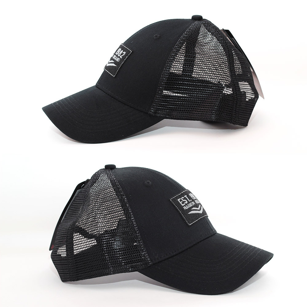 通気性の良いメッシュバックにスクエアなブランドロゴアップリケがアクセントに。