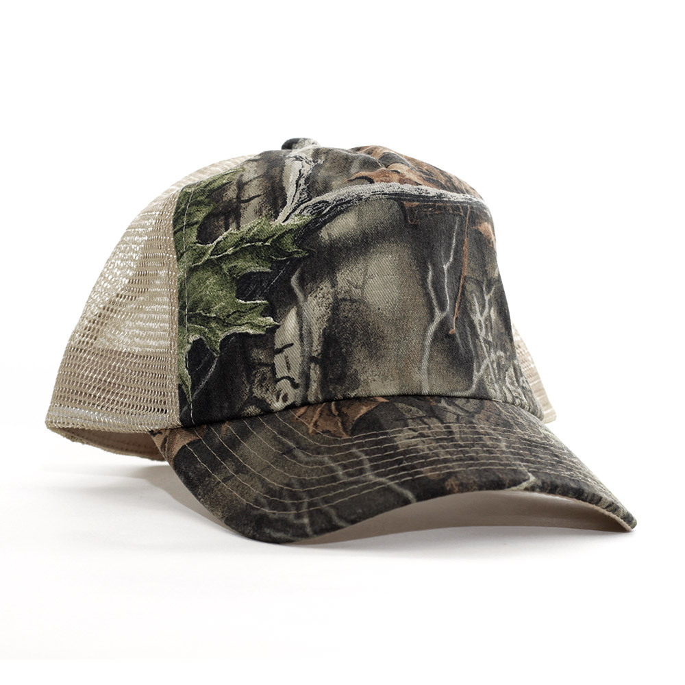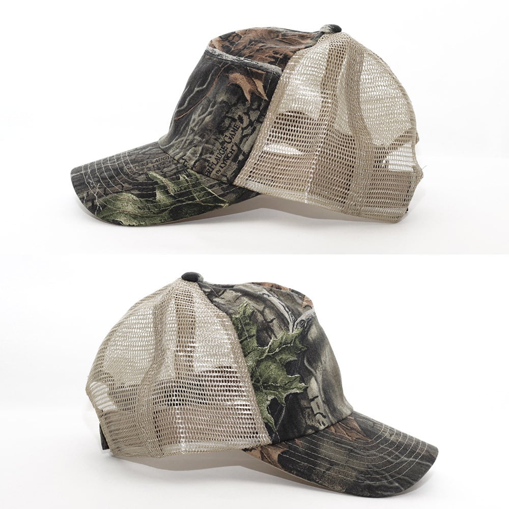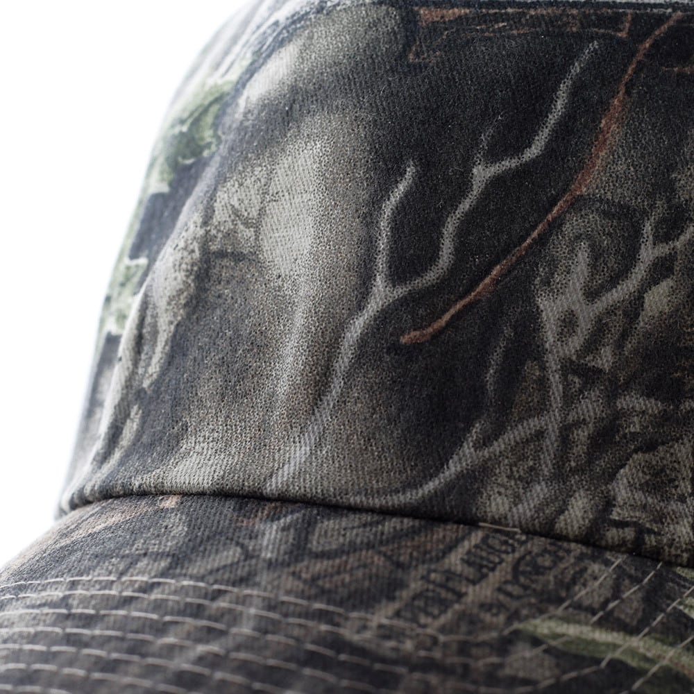 サバゲー、ハンティング、バードウォッチングなどに活躍できるリアルツリーカモフラージュ柄のキャップ帽。