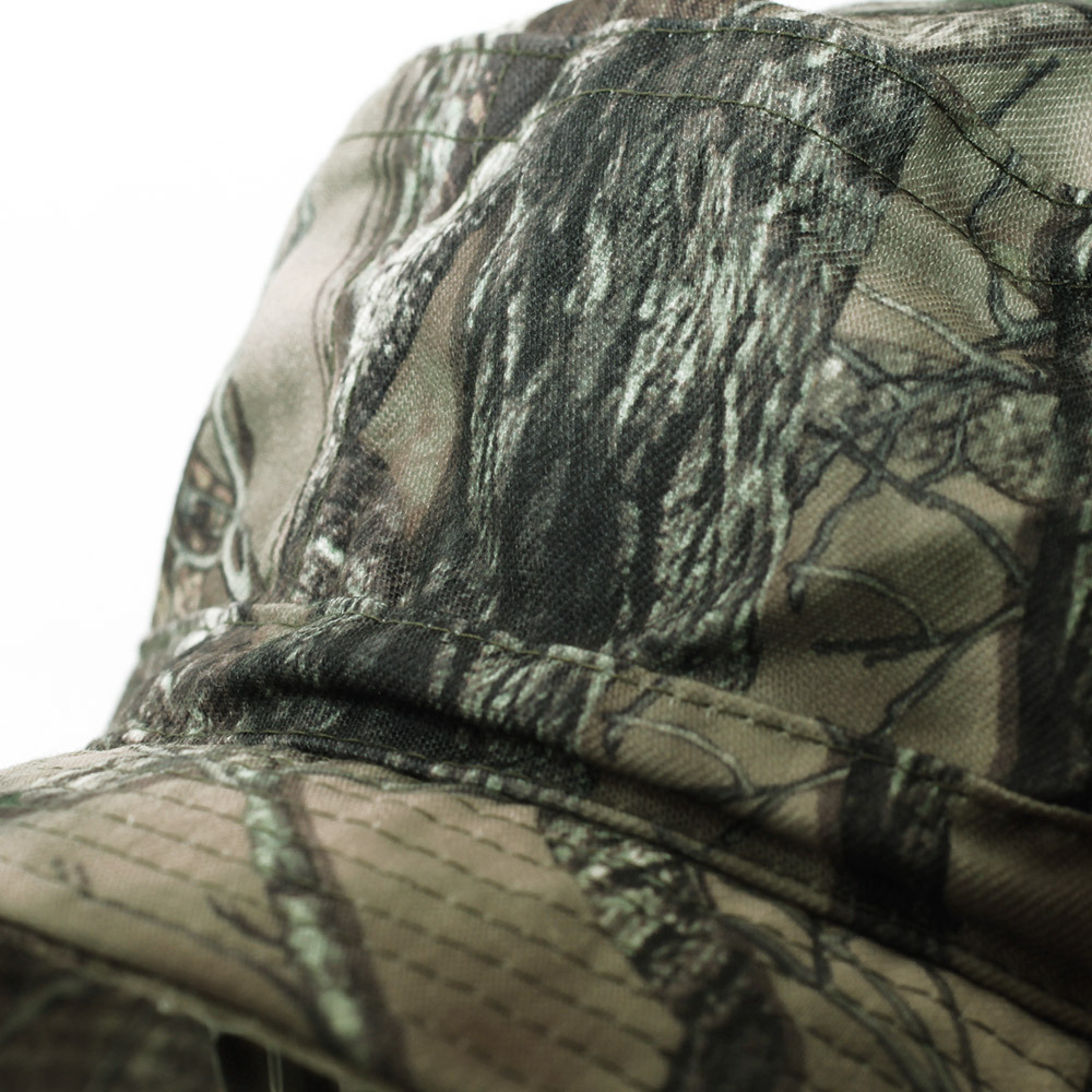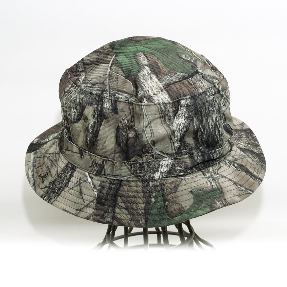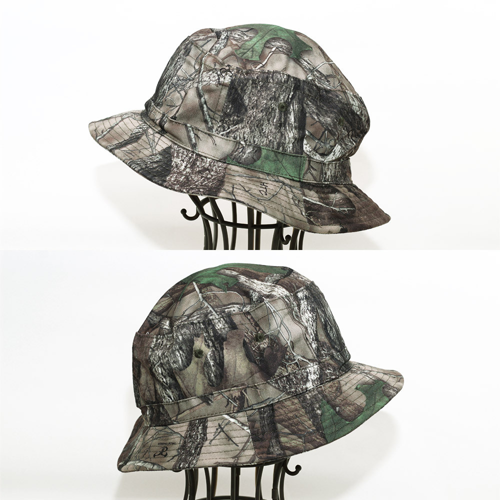 サバゲー、ハンティング、バードウォッチングなどに活躍できるリアルツリーカモフラージュ柄のバケットハット。