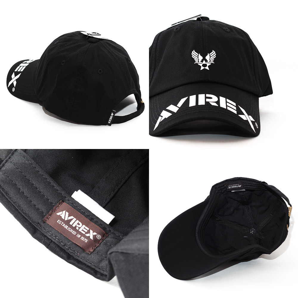 アビレックス ローキャップ 帽子 ブラック AVIREX BRIM LOGO PRINT CAP アヴィレックス 81264000-80 ミリタリー アメリカ