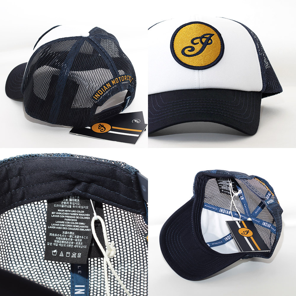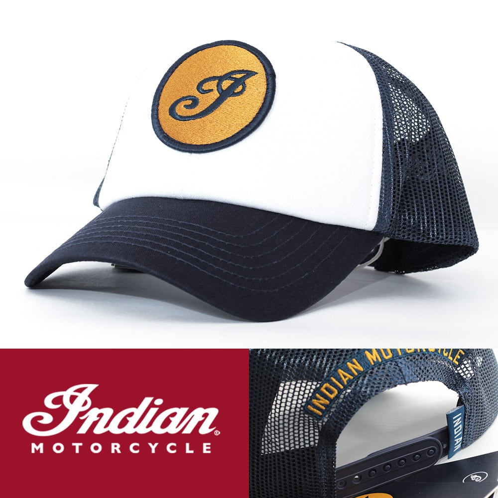インディアンモーターサイクル メッシュキャップ 紺×白 刺繍ワッペン Indian Motorcycle 帽子 バイカー アメカジ 2864861