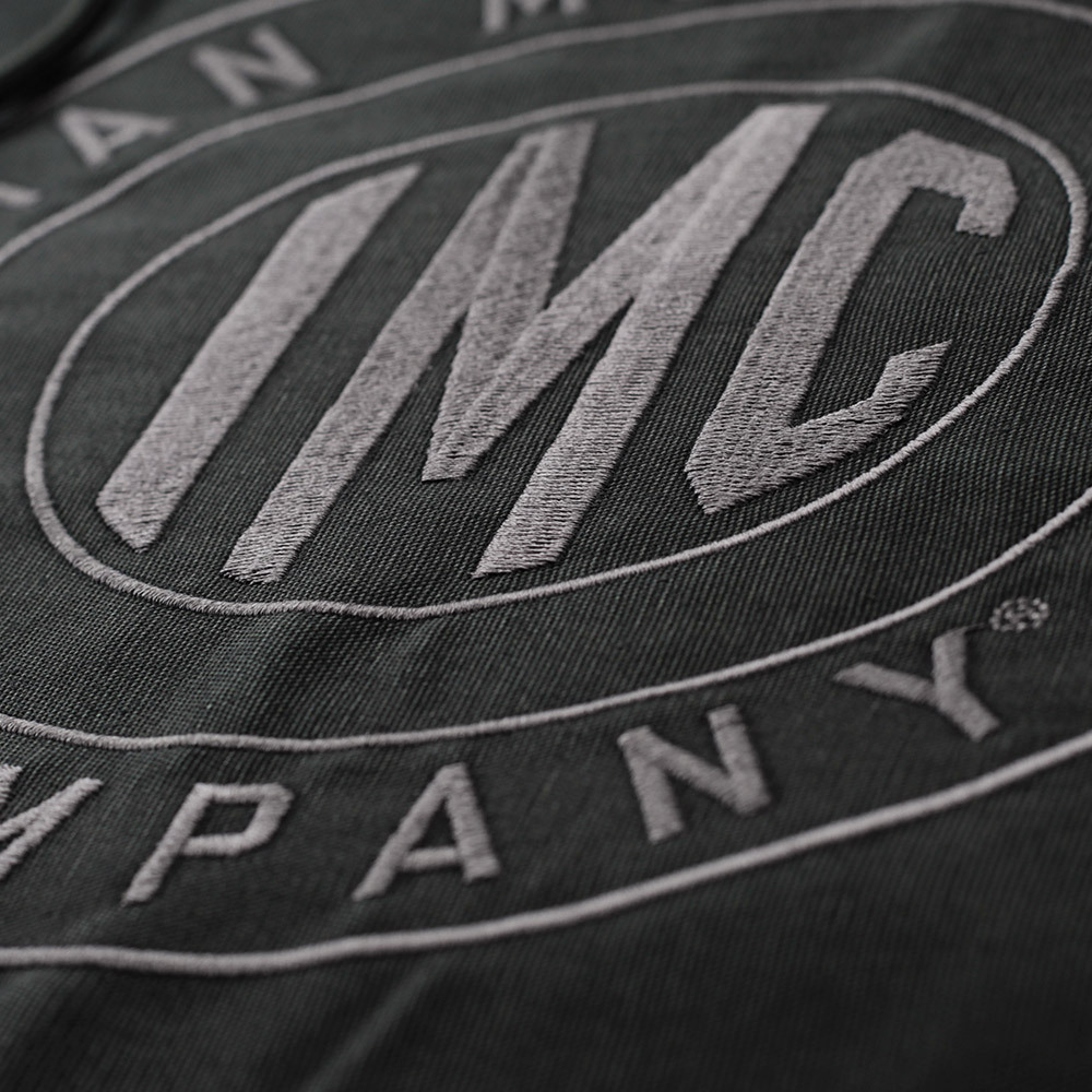 フロントに大胆な「IMC(Indian Motorcycle Company)」の立体感ある刺繍ロゴが施されています。
