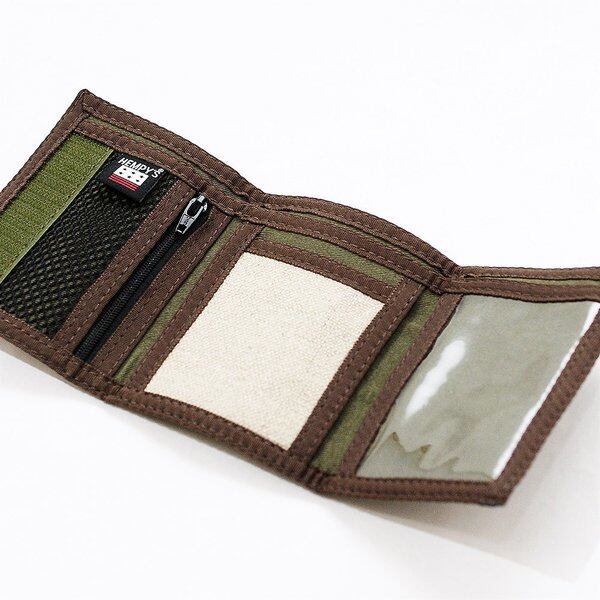 The tri-fold wallet has been a HEMP Y’S staple for over 20 years. It is one of our most popular wallets. This tri-fold wallet has 100% hemp shell with velcro closure and a tribal design. It features a clear plastic ID holder, a standard bill holder, a credit card holder, and an interior zipper coin pocket. The cash pocket measures 9 1/4″ by 4″. When the tri-fold wallet is closed it measures approximately 4 5/8 ” by 3 1/4″. When open and flat the tri-fold wallet measures 10″ by 4 1/2″. This is the perfect gift.