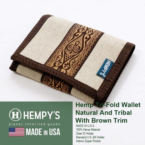 商品名:Hempy's Hemp Tri-fold Wallet Natural and Tribal with Brown Trim