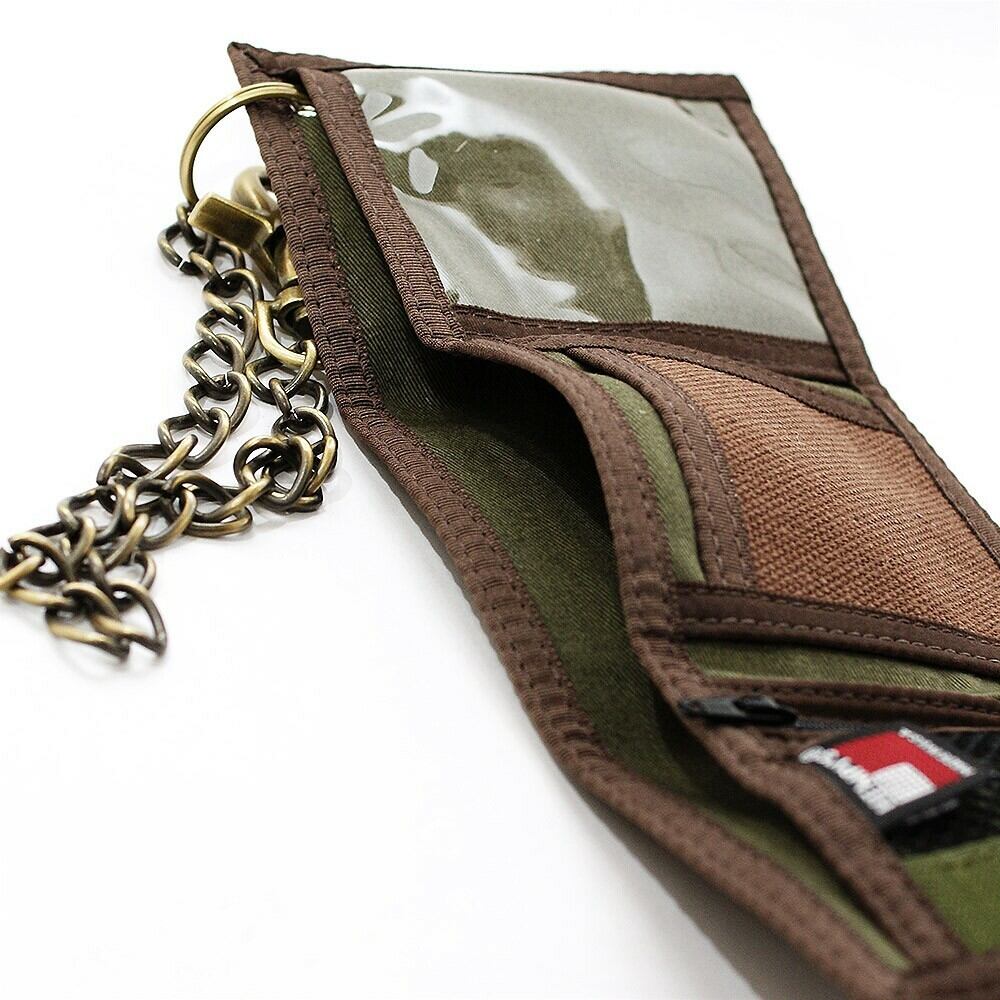 商品名:Hemp Tri-fold Chain Wallet Brown and Tribal with Brown Trim