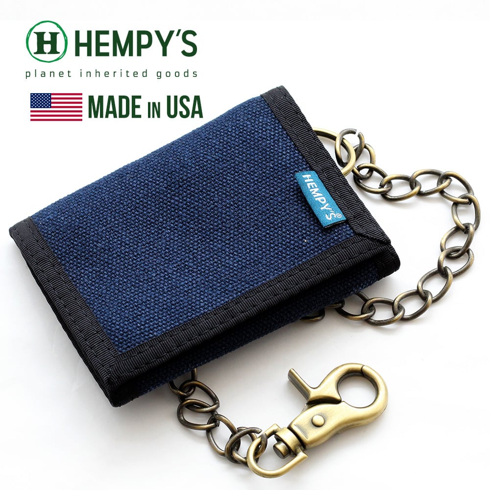 サイフ 短財布 3折 チェーン付 麻 ヘンプ ヘンピーズ Hemp Tri-fold Chain Wallet Blue with Black Trim ブルー/ブラック TFLC USA生産