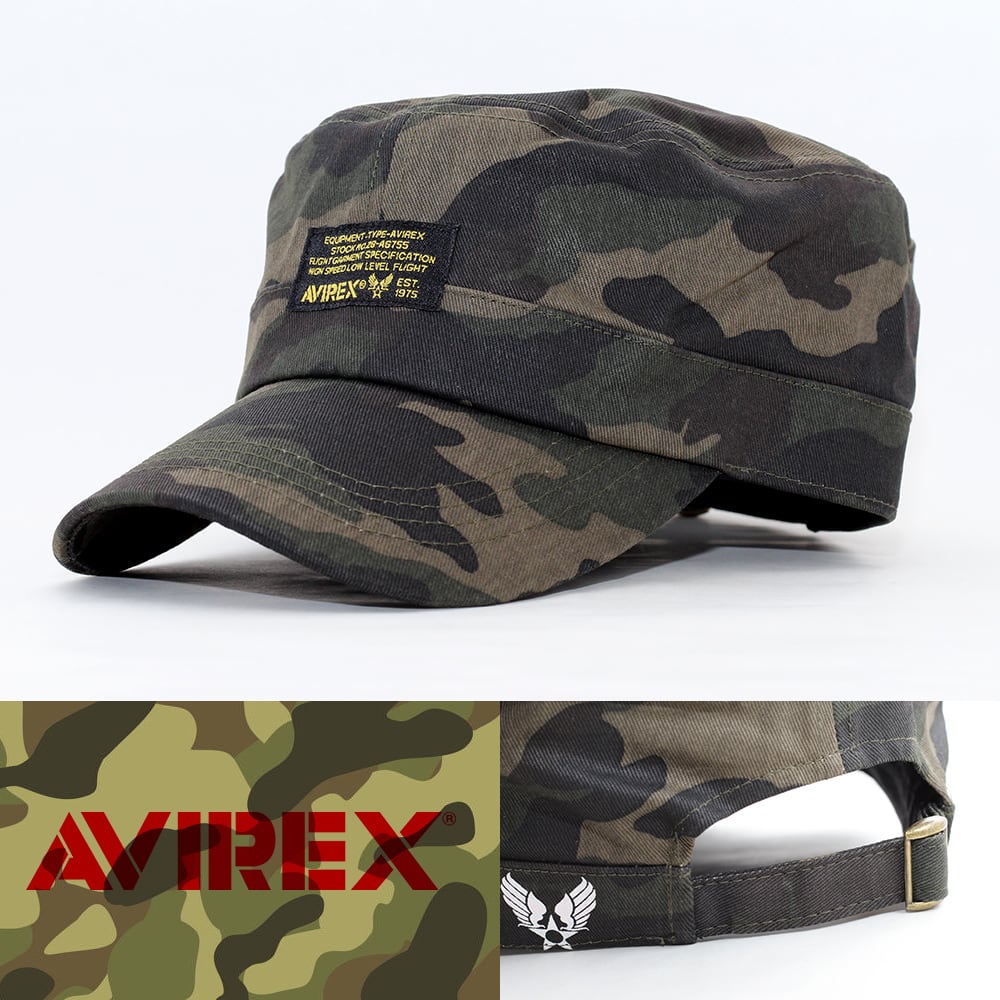 ワークキャップ 帽子 メンズ AVIREX FRONT NAME WORK CAP アヴィレックス カモフラ 迷彩 アーミー 14493000-36 USA ミリタリー