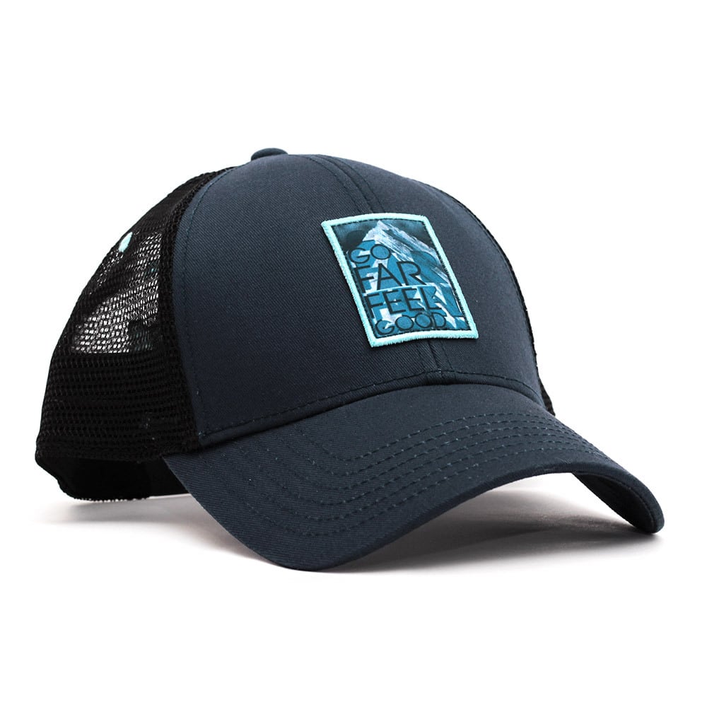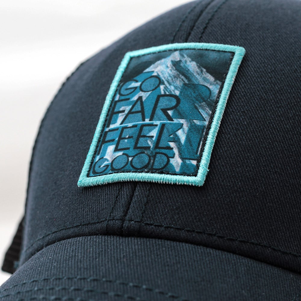 SmartWool's Go Far, Feel Good trucker hat offers classic ball-cap styling with a graphic logo on the front, breathable cotton construction and a snap back for a custom fit.