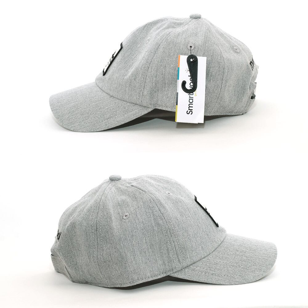 定番のグレーにスクエアなロゴアップリケがデザインされたローキャップです。