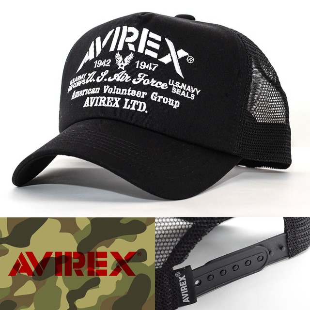 アビレックス 帽子 メッシュキャップ ブラック AVIREX MULTI LOGO MESH CAP アヴィレックス アーミー 81623700-80 ミリタリー USA